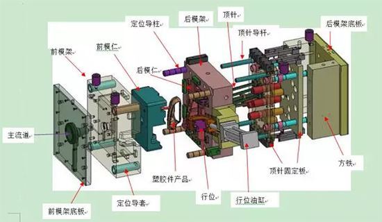 最后是顶出机构。华体会足球-华体会(中国)注塑好后的塑料件基本上留在型芯上,这时候就需要顶出机构来顶出塑料件。顶出机构通常是顶针,顶板或者顶块之类的。
